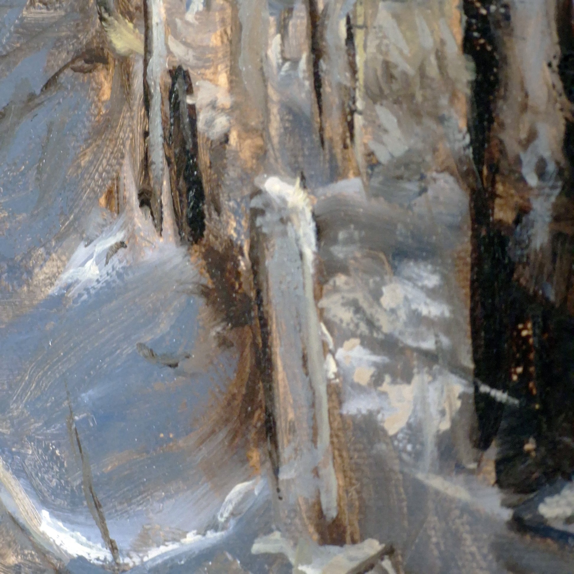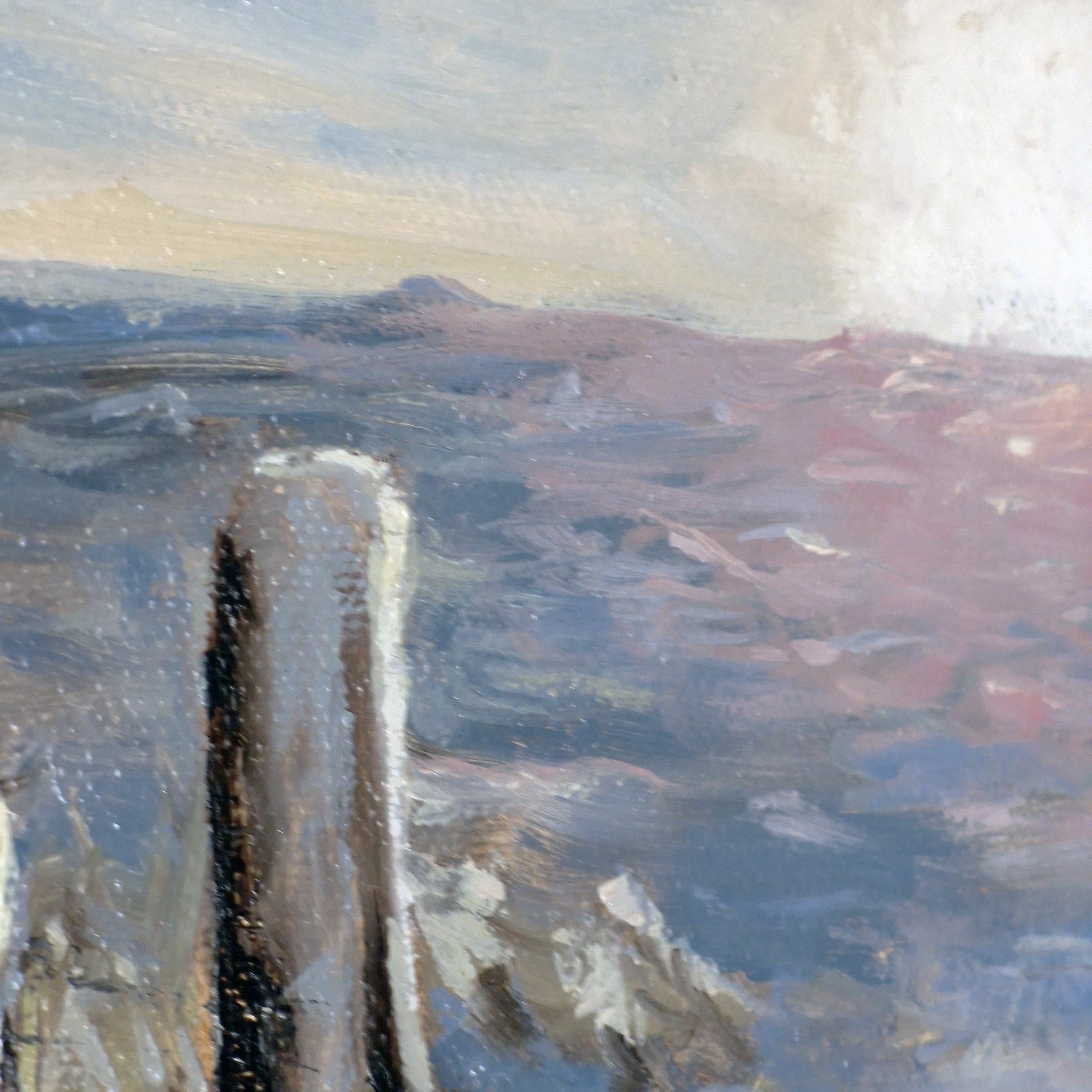 This original oil painting captures a snow-filled field near Muir Mains Farm in Hamilton, Scotland—painted in an expressive style that blends bold palette knife work with delicate light. It conveys not just the texture of the winter landscape, but the quiet emotion of the moment.