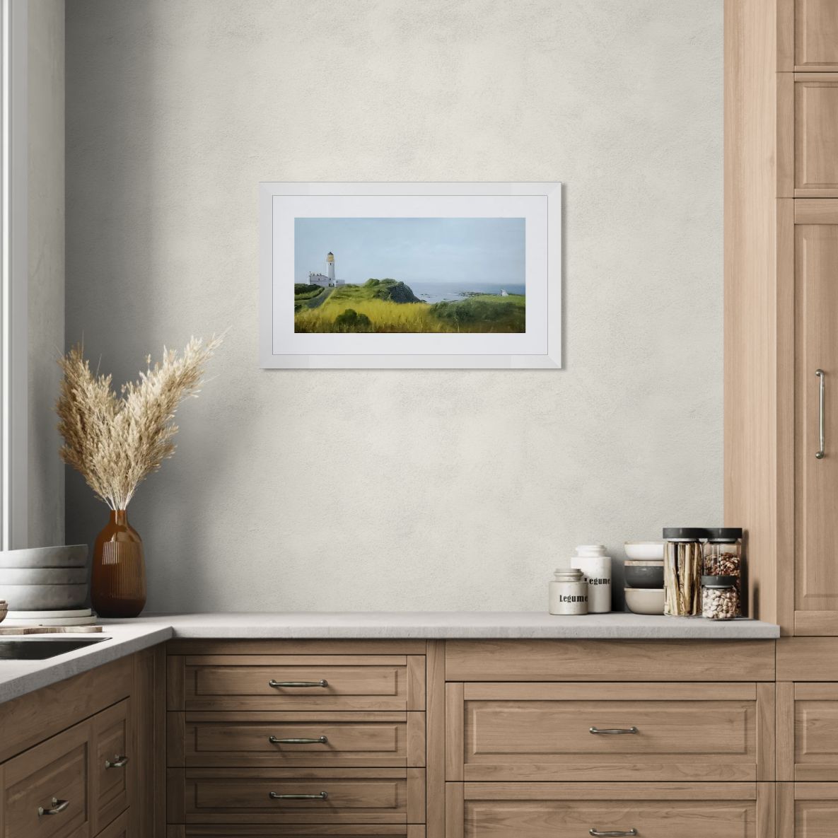 Set on a bright summer’s day, the scene is filled with life and clarity: lush green grass and the gentle rhythm of waves along the Ayrshire coast. The lighthouse, a symbol of constancy and guidance, rises in the distance—framing the scene with quiet significance.